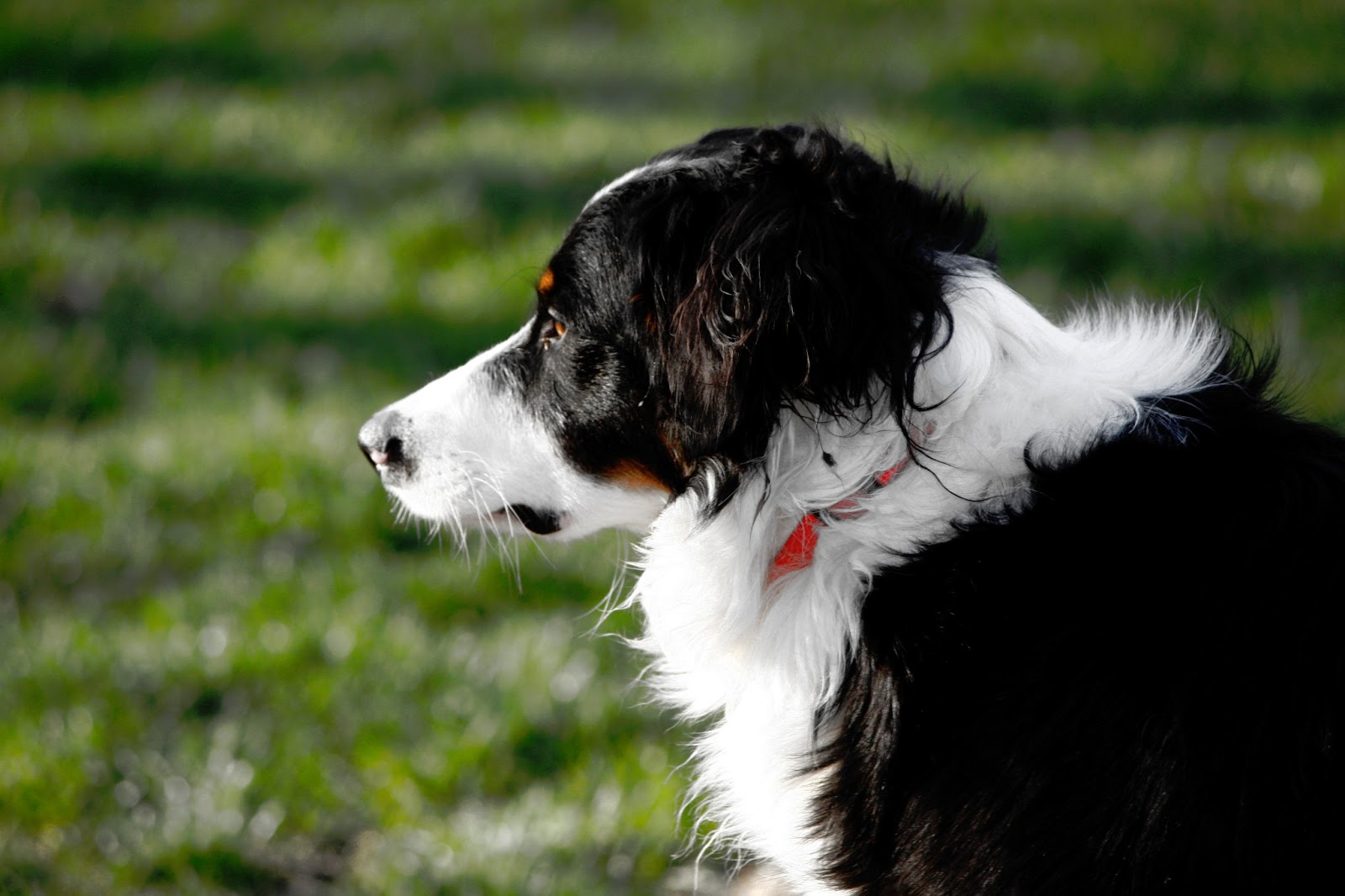 Kissé kontrasztos, kissé szomorkásnak tűnő, de vérbeli border collie.