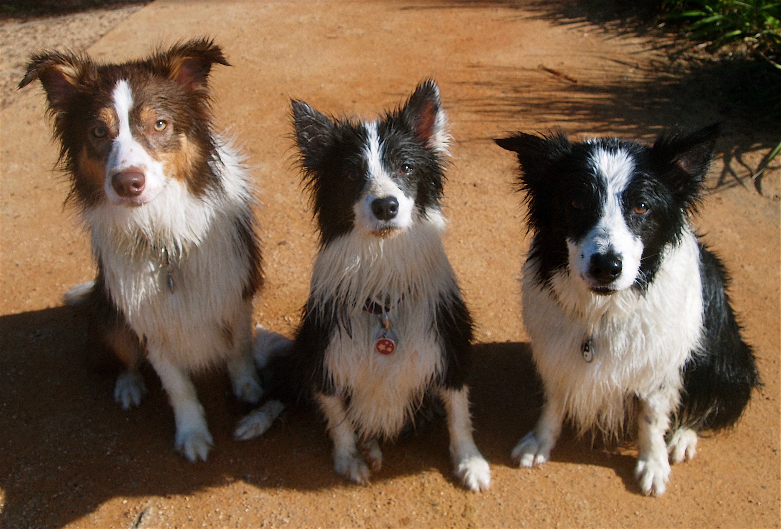 Eme három border le sem tagadhatná, hogy szereti a vizet. Egy alapos pancsolás után is figyelik a gazdi minden mozdulatát, óhaját és sóhaját. Vajon visszamennek-e pancsolni a tóba, vagy esetleg más feladatot kapnak? A nagy melegben talán a fürdőzés lenne a legjobb. Csak beledobni a vízbe a botot, ők pedig örömmel úsznának és hoznák vissza.