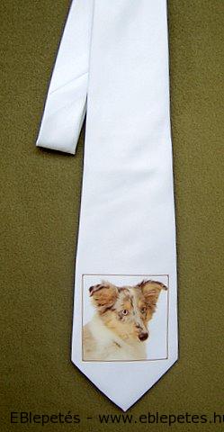 Lágy fényű, selymes tapintású, szatén anyagból készült fehér nyakkendő. Blue-merle színű border collie-s mintájával, igazán különleges darab! Megszállottan border collie rajongó férfiak részére ajánljuk, olyanoknak akiknek életformája a border collie gazdiság! Nagyszerű, és látványos darad lehet, mondjuk amikor kutyakiállításokra látogatsz ki, de akár egy elegáns, ugyanakkor laza bulis viselethez is jól illik.